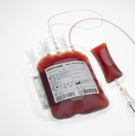 Demotek double blood bag is designed for the collection and separation of whole blood into two different blood components; plasma and red cells.