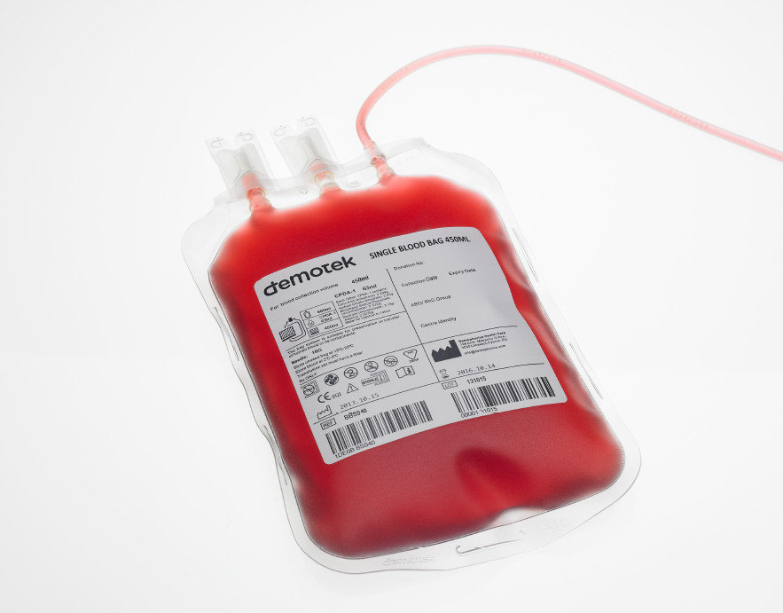 Demotek single blood bag is designed for blood collection, preservation and transfusion of whole blood. The primary bag contains CPDA-1 anticoagulant solution.