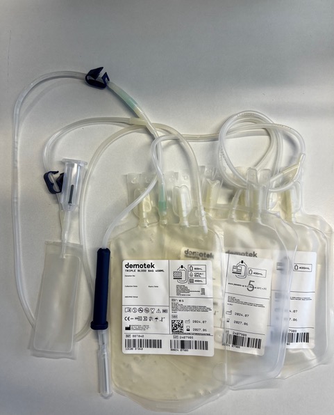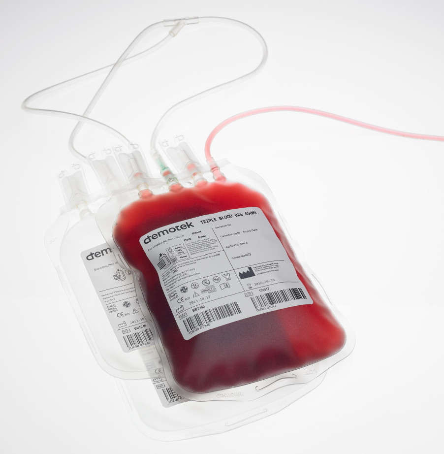 Demotek triple blood bag is designed to separate whole blood into three blood components; red blood cells, platelets and plasma through the process of centrifugation and extraction.